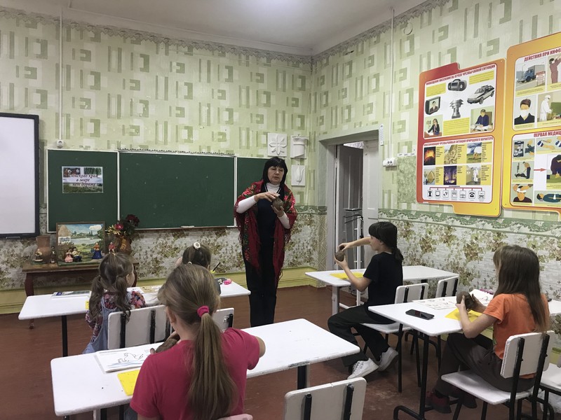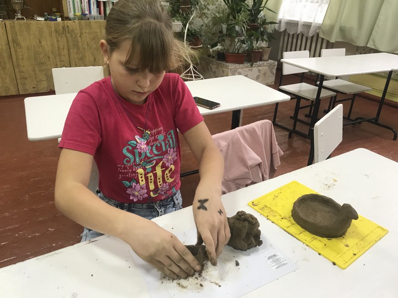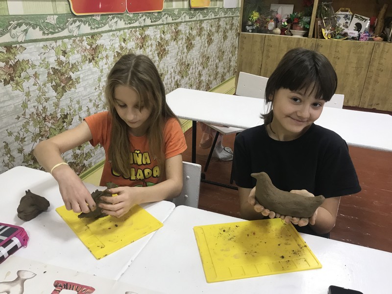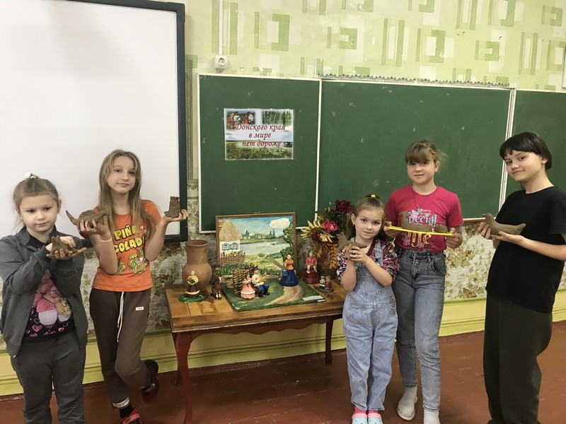 В период осенних каникул обучающиеся начальных классов посетили кружок «Донские мотивы», которым руководит учитель изобразительного искусства Самсонова Н.А. Дети учились рисовать осенний пейзаж родного края, а на занятии по лепке создавать из глины казачью утварь и птиц.