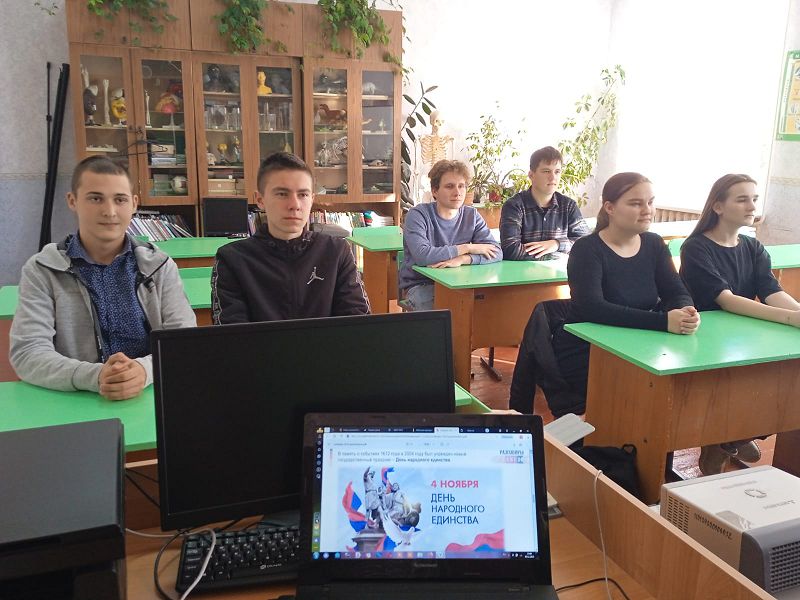 В преддверие праздника 3 ноября 2022 г. в нашей школе в 1-11 классах состоялись классные часы «Разговоры о важном» с одной темой, посвященной Дню народного единства.