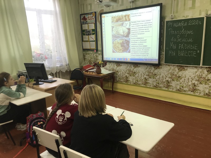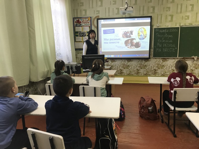 14 ноября - занятия внеурочной деятельности «Разговоры о важном» посвящены теме «Мы разные, мы вместе». На них обучающиеся совершили виртуальное путешествие по России. На территории нашей страны проживают представители почти 200 национальностей, имеющих свою культуру, традиции и обычаи. Если пролететь на самолете с запада на восток то потребуется 10 часов, а если с севера на юг – 5 часов. Уникальность нашей страны еще и в том, что в ней на протяжении всего ее существования всегда поддерживались добрососедские отношения с разными народами, поддержка и защита их границ, уважение к их культуре, русскому языку и родным языкам народов Российской Федерации. Известно, что языки могут исчезнуть, если люди перестанут говорить, писать и читать на родном для них языке. Для сохранения родных языков народов Российской Федерации, родные языки изучают в школах, выпускаются газеты и журналы на родных языках, проходят конкурсы и фестивали, сохраняя культуру своего народа. Мы очень разные, но веками живём вместе, учимся и работаем, хорошо друг друга понимаем и составляем единое целое. Из сегодняшнего занятия ребята узнали многое о языках и культуре многочисленных народов нашей страны, о том, что Россия бережно сохраняет их разнообразие.