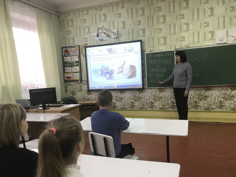В этот день классные руководители провели занятия «Разговоры о важном», посвященные Дню матери. В России день матери празднуется в последнее воскресенье ноября. В разных странах он приходится на разные даты, но суть его едина — вспомнить о женщине, которая подарила жизнь, воспитала, отдала свою любовь, силы и терпение ребенку.