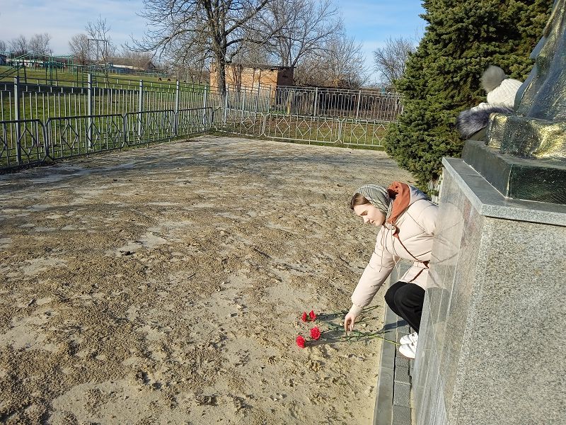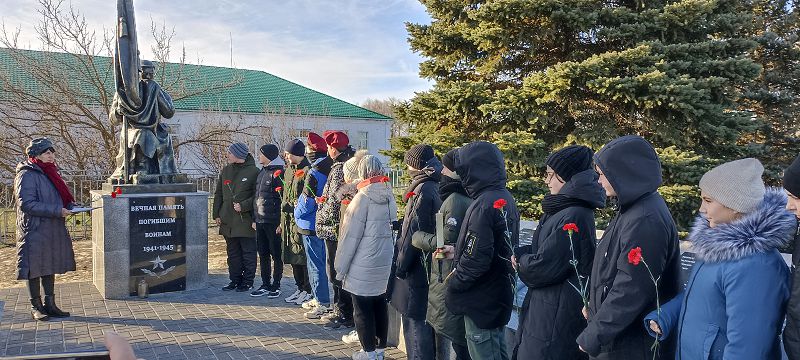 2 декабря 2022 г. членами волонтерского отряда «Мы волонтеры» (руководитель Рягузова О.Н.) и юнармейского отряда «Патриот» (руководитель Борисова Н.И.) были возложены цветы на Братскую могилу. Советник директора по воспитанию Самсонова Н.А. начала митинг стихами поэта М. Исаковского:
