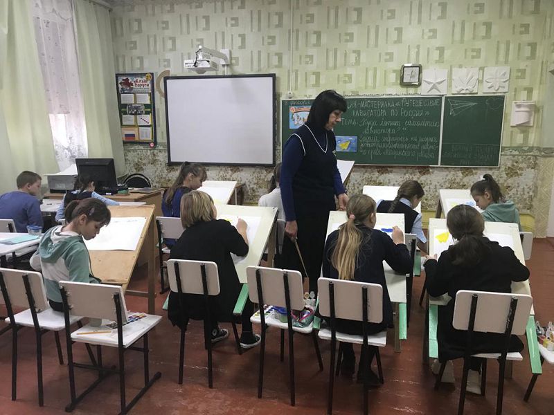 Под руководством советника директора по воспитанию Самсоновой Н.А.- учителем изобразительного искусства, самолетик навигатора путешествовал на рисунках детей и знакомился с достопримечательностями родного края Тацинского района. Учащиеся 1 класса (учитель Реентова Л.М.) 2, 4 классов рисовали ватными палочками. Эта самая простая техника, где нужно только заменить художественную кисть на ватную палочку. Художники и скульпторы, дизайнеры и архитекторы – все это люди ежедневно привносят в нашу жизнь красоту и гармонию. Благодаря им, мы рассматриваем статуи в музеях, любуемся живописными полотнами, удивляемся красоте старинных построек. Современное изобразительное искусство поражает нас, классическое заставляет задуматься. Обучающиеся 6 класса совершили экскурсию на выставку картин русских художников-классиков. Взяли в руки кисти ученики 8 класса и нарисовали за мольбертами свои любимые темы.