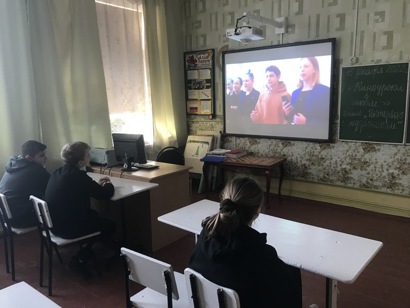 В рамках реализации Всероссийского народного проекта «Киноуроки в школах России», 15 декабря 2022 года, учащиеся нашей просмотрели фильмы: «Новогодний подарок» о добре – 1 класс, «С Новым годом, Раиса Родионовна!» о благодарности и признательности – 2-5 классы, «Интервью с неудачником» о единстве слова и дела – 6 -11 классы.