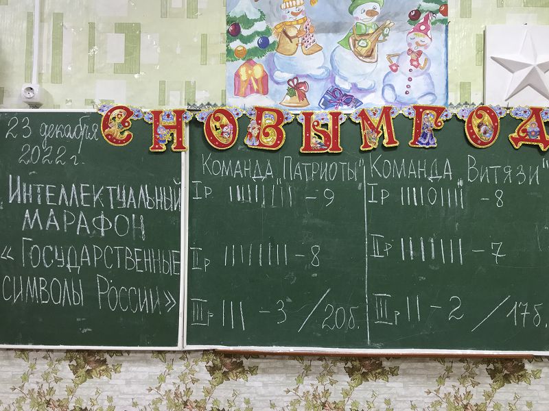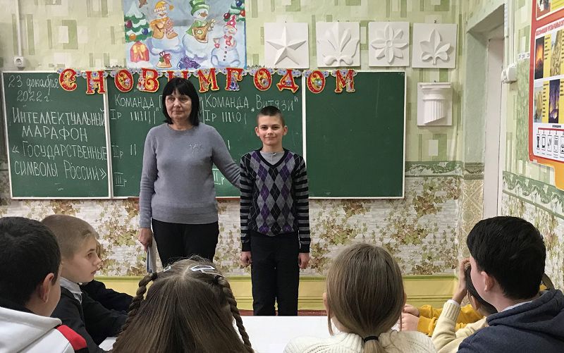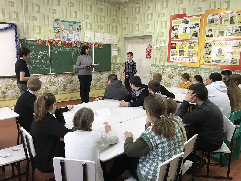 23 декабря 2022 года с обучающимися 4-8 классов проведен интеллектуальный марафон «Государственные символы России» под руководством советника директора по воспитанию Самсоновой Н.А. совместно с учителем обществознания Высочевой Л.Е. Между двумя сборными командами капитанами, которых стали Шульга Егор ученик 5 класса – капитан команды «Патриоты» и Шишов Андрей ученик 8 класса- капитан команды «Витязи», состоялось 3 раунда, вопросы которых были основаны на информации, заложенной в материалах РДШ. На основе имеющихся знаний, обучающиеся расширили свои представления об истории официальных символов страны (герб, гимн, флаг). Победителем стала команда «Патриоты» во главе с капитаном Шульга Егором, который всеми участниками марафона признан лучшим знатоком Государственных символов нашей страны.
