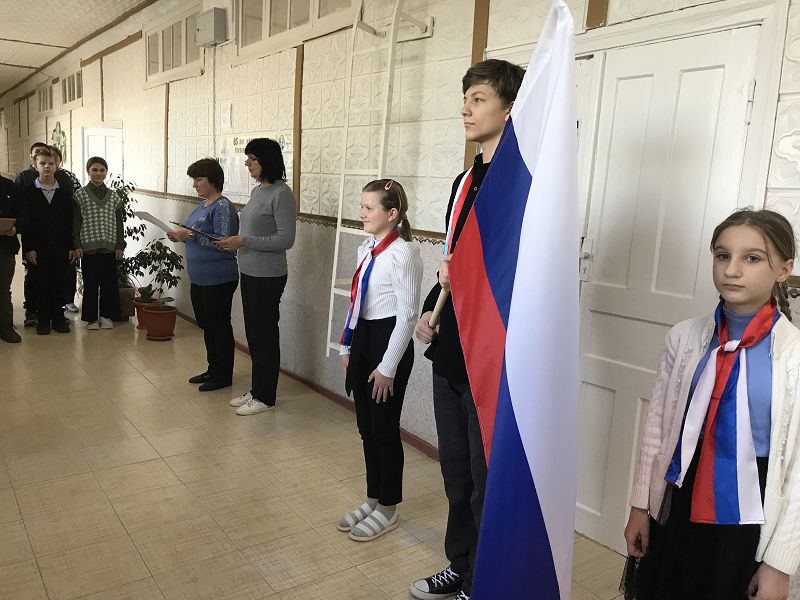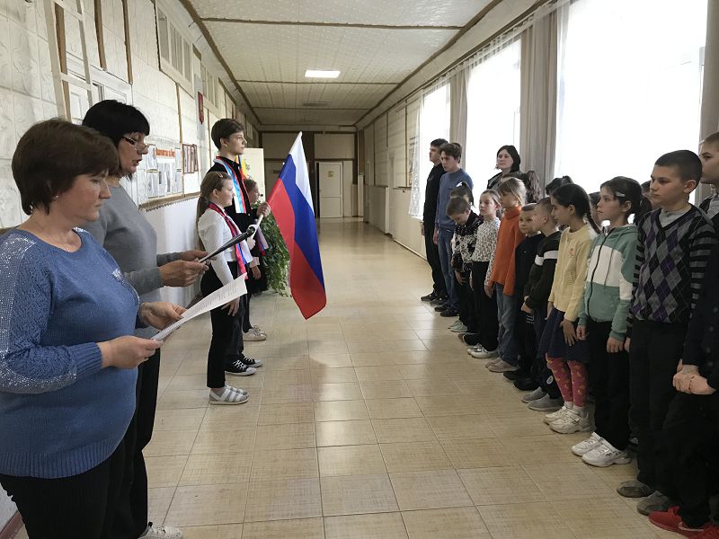 С целью привития ценностного отношения, уважения к государственной символике и правилам обращения и использования флага, гимна и герба России была посвящена школьная линейка, проведенная старшей вожатой Мышанской С.В. и советником директора по воспитанию Самсоновой Н.А. При выносе знамени всеми школьниками был исполнен Гимн Российской Федерации.