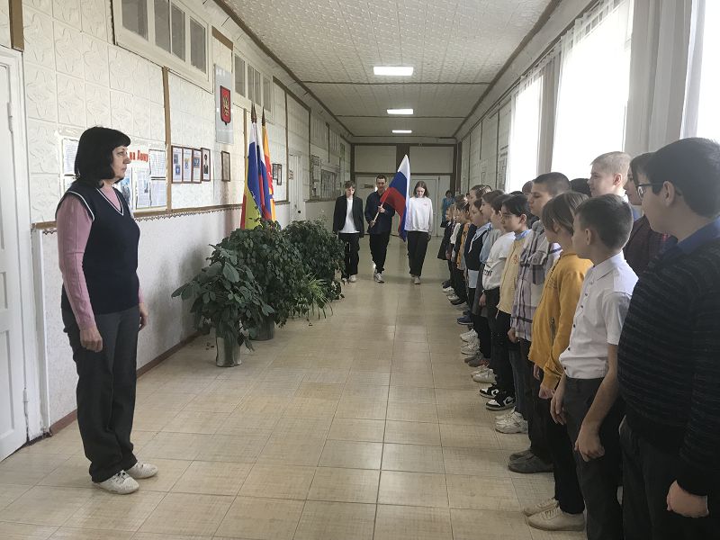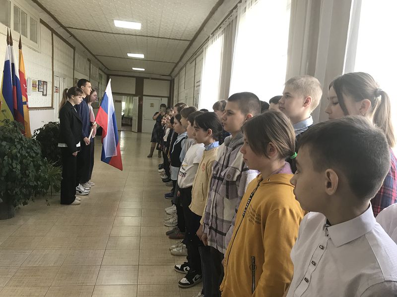 13 марта 2023 г. школьная линейка начата с выноса государственного флага под исполнение гимна РФ знаменной группой. Дежурным классом на неделе объявлен 8 класс под руководством классного руководителя Ливанда Е.В. Советником директора по воспитанию Самсоновой Н.А. был представлен план воспитательных мероприятий на неделю.