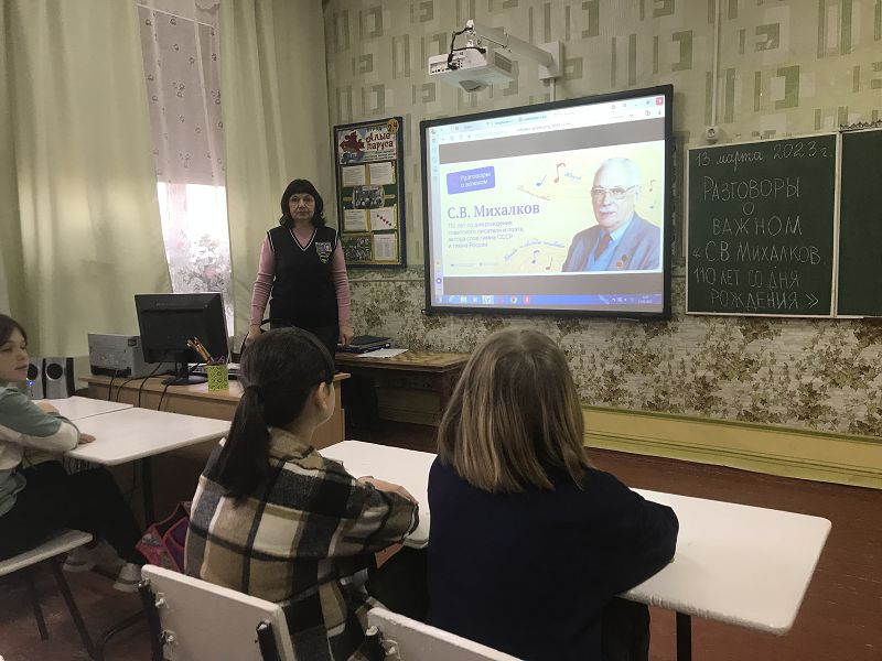 Сегодня, 13 марта - занятия внеурочной деятельности «Разговоры о важном» посвящены теме «110 лет со дня рождения советского писателя и поэта, автора слов гимна СССР и гимна России С.В. Михалкова». На них обучающиеся познакомились с биографией и творчеством Сергея Владимировича Михалкова, посмотрели видеоролики и вспомнили его детские произведения. До 15 марта состоятся мероприятия, посвященные 135-летию со дня рождения российского педагога и писателя А.С. Макаренко. 17 марта классные руководители подготовят и проведут мероприятия, посвященные Воссоединению Крыма с Россией.