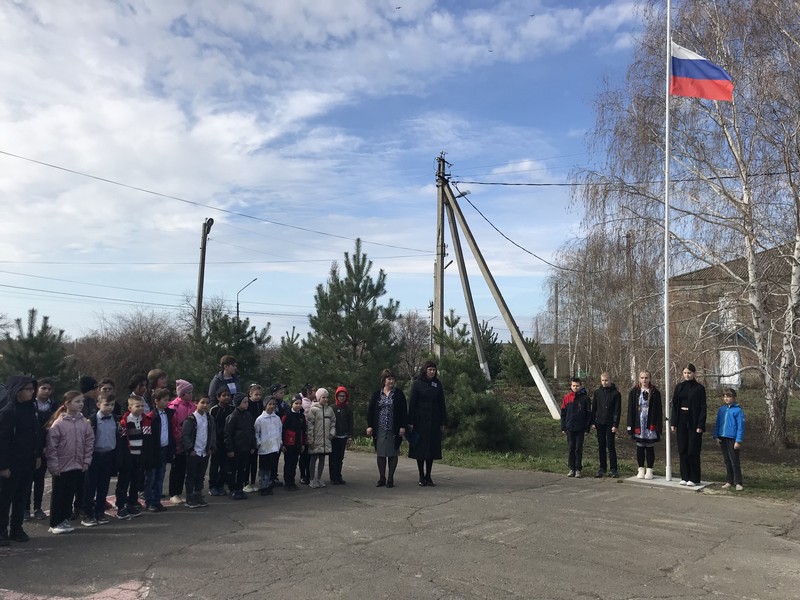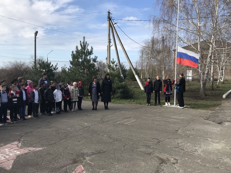 3 апреля 2023 г. – первый учебный день после весенних каникул начат со школьной линейки. Поднятие флага РФ под исполнение гимна России было предоставлено отличникам учебы по итогам 3 четверти: Казьменко Анне, Клименовой Елене, Красноперову Егору, Шульга Егору и Шульга Кире.