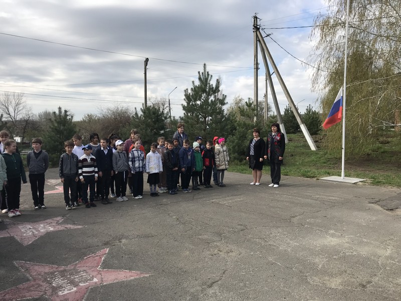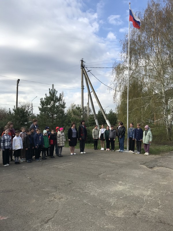 10 апреля 2023 г. школьная линейка начата с подъема государственного флага под исполнение гимна РФ обучающимися 4 класса.