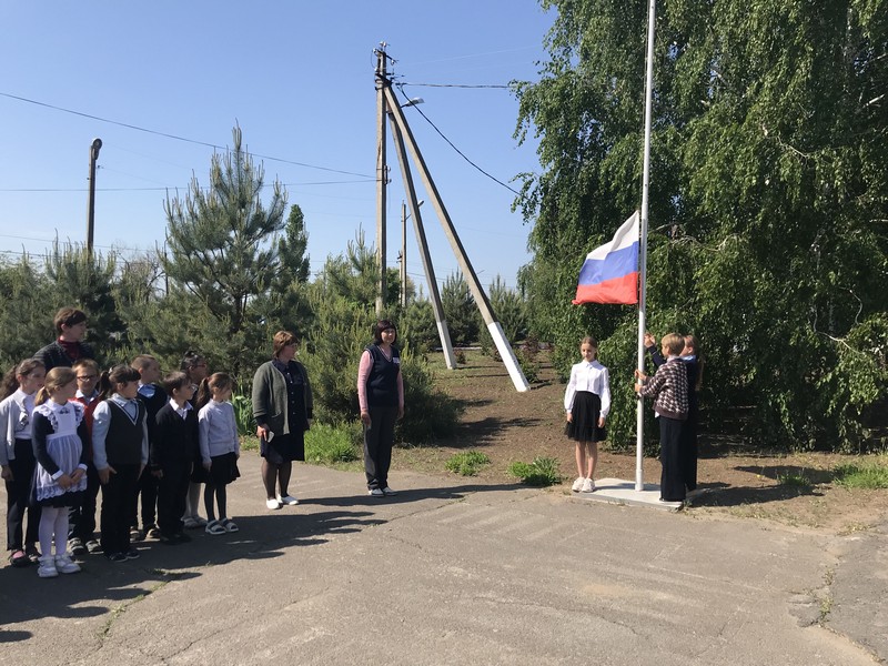 15.05 2023 г. в МБОУ Зазерской СОШ прошли внеурочные занятия «Разговоры о важном» на тему: «День детских общественных организаций». Учебный день начат с поднятия государственного флага России под Гимн РФ. Почетное право поднять флаг РФ было предоставлено участницам районного фестиваля «Казачок Дона» ученицам 4 класса Бурховцовой Валерии, Пушкаревой Ульяне, Евтеевой Екатерине, Черновой Виктории и Карадян Софии.