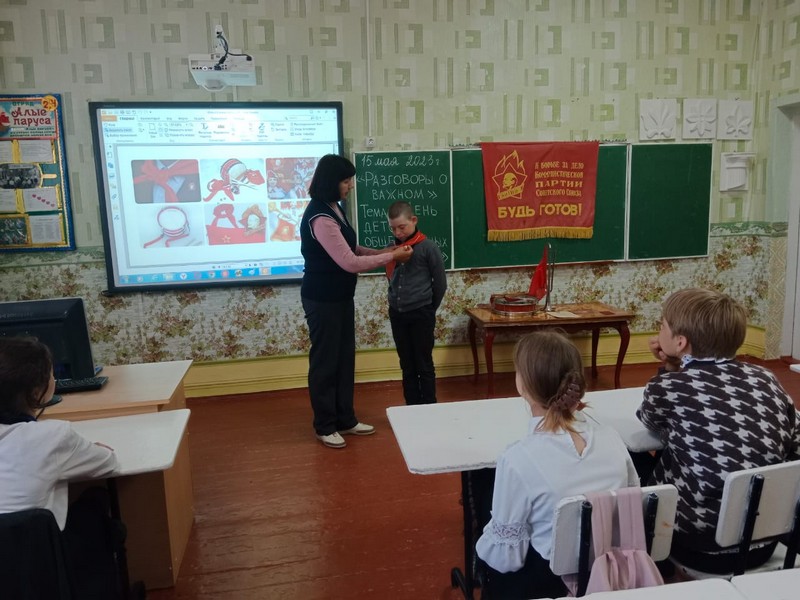 На занятиях «Разговоры о важном» обучающиеся познакомились с историей развития детских общественных организаций в нашей стране, посмотрев ролик «Развитие детского движения в России». Ребята узнали, что возникла она 19 мая 1922 г. и объединила три поколения детей: октябрят, пионеров и комсомольцев. Сегодня детских организаций существует большое количество, и многие из них объединились в Российское движение детей и молодежи «Движение первых». Ребята вспомнили, какая миссия у Движения первых «быть с Россией, быть человеком, быть в движении, быть первым, быть вместе».