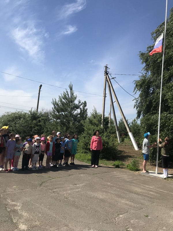 День в лагере был начат с поднятия государственного флага под гимн Российской Федерации. После утренней зарядки с детьми была проведена минутка здоровья «Как ухаживать за зубами».