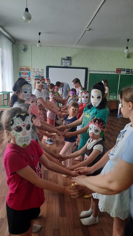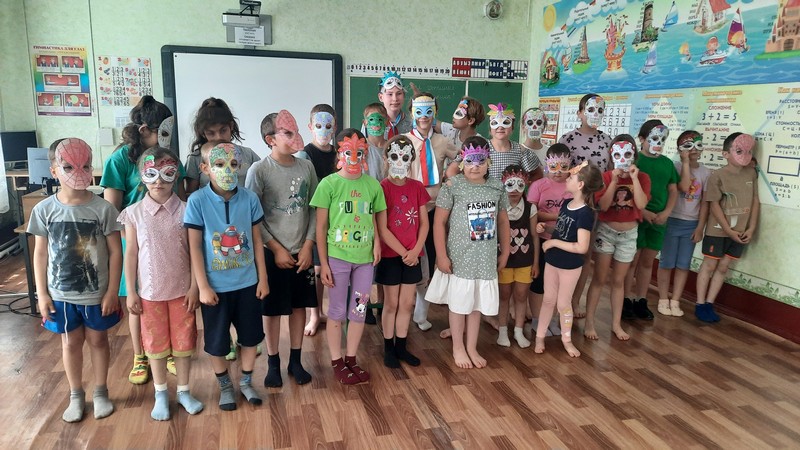 Продолжился день весёлым мероприятием «Шоу –маскарад». Сначала дети самостоятельно изготовили маски. Затем маскарад продолжился соревнованиями под латино - американские мелодии. Ребята танцевали ламбаду, зумбо и т.д. Детвора подобрала для себя маскарадные костюмы в процессе игры «Музыкальный ящик». Вожатые поощрили сладкими призами за зажигательные танцы всех участников.
