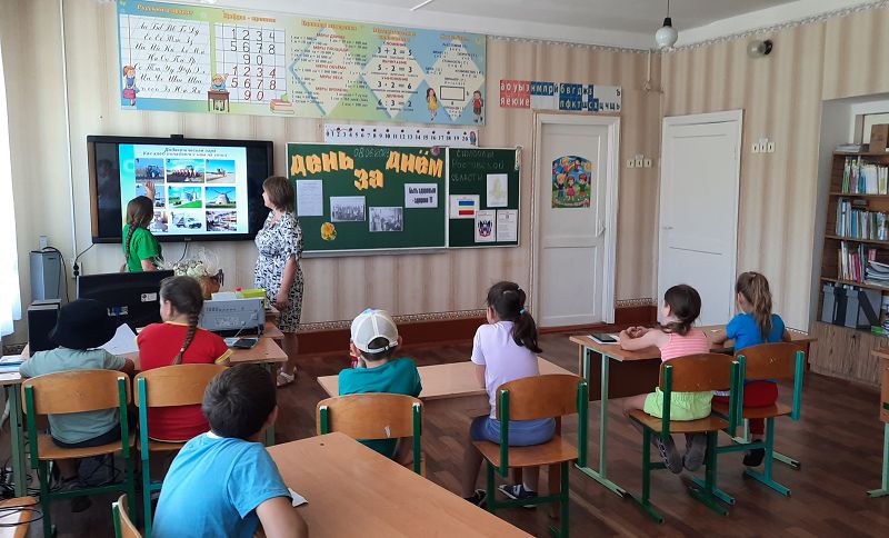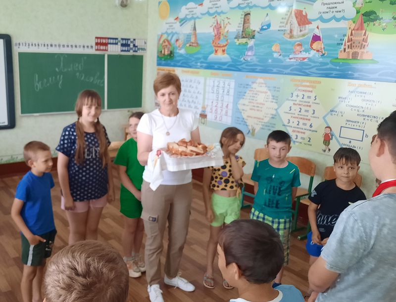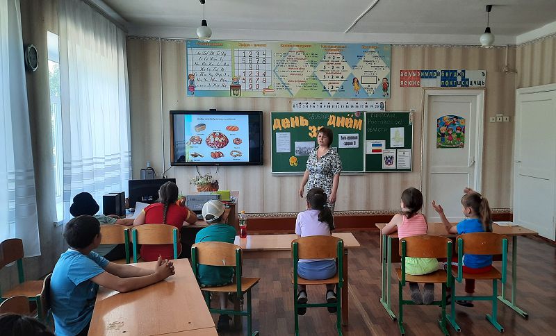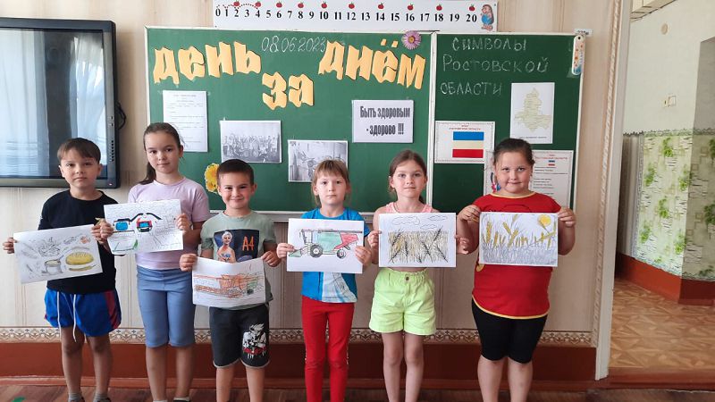 По традиции утро в нашем пришкольном лагере началось с зарядки, проведения инструктажей по технике безопасности, вкусного и полезного завтрака. На минутке Здоровья «Зеленая аптека - на службе человека» воспитанники вспомнили о значении лекарственных трав. В рамках регионального Дня единых действий в нашем лагере прошли мероприятия, посвященные «Дню Донского поля».