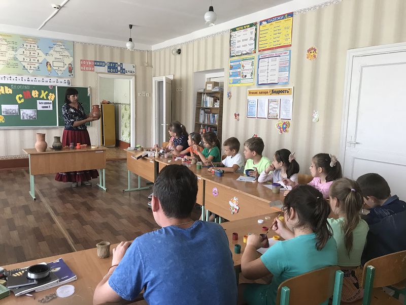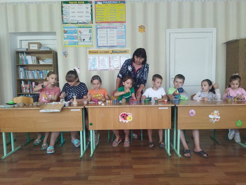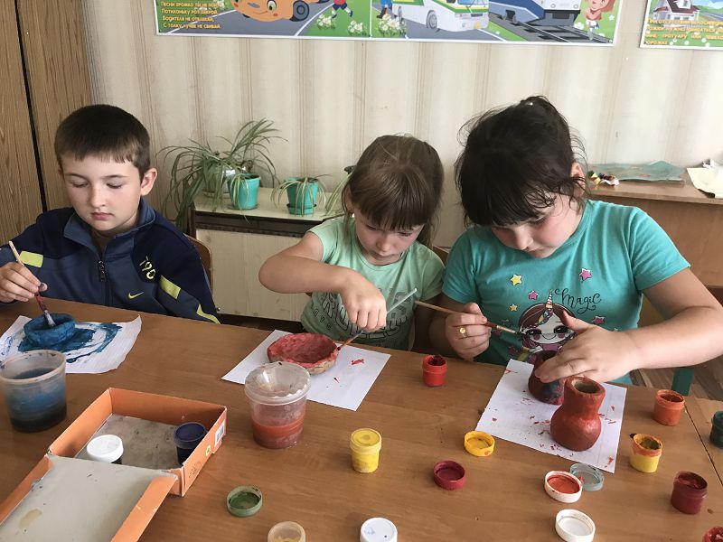 Самсонова Н.А. организовала роспись глиняной посуды. Дети расписали казачью утварь: кувшины, чайники, тарелки, а затем подарили свои поделки школьному музею.