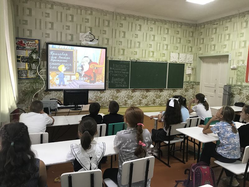 7 сентября в нашей школе состоялись мероприятия, посвященные этому событию. Для обучающихся начальных классов организован был киноклуб «Необычно об обычном». Детям был показан мультфильм «В стране невыученных уроков» с последующим его обсуждением. Советником директора по воспитанию Самсоновой Н.А. были заданы детям вопросы о значении грамотности в жизни каждого человека и что для этого нужно делать. Дети сделали вывод о том, чтобы стать грамотным человеком нужно добросовестно учиться. «Интеллектуальное лото» по знаниям русского языка проведено с 6-7 классов учителем русского языка и литературы Исаевой И.В. Интеллектуалами русского языка стали ученик 6 класса Шульга Егор, ученицы 7 класса Матвиенкова София и Ключинская Софья.