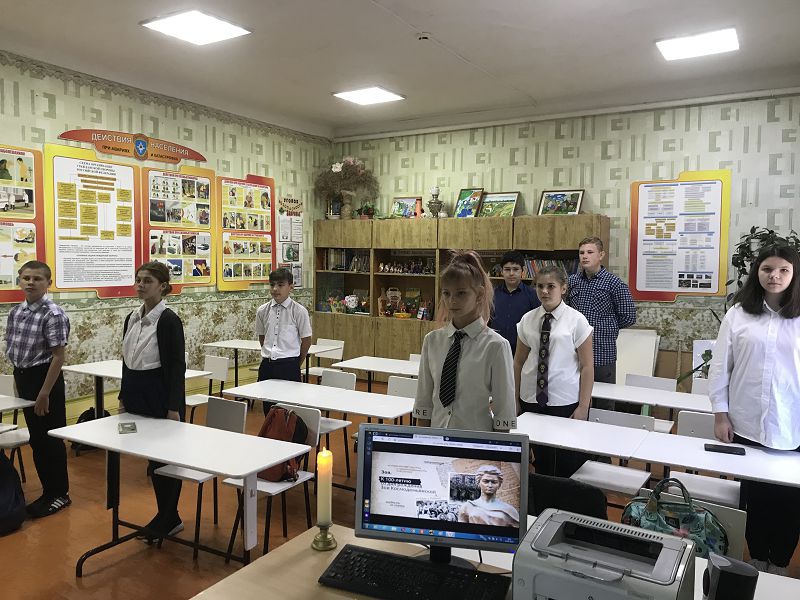 Обучающиеся 1-11 классов посмотрели видеоролики с выступлением помощника президента В.Р. Мединского, о музеях, посвященных подвигу Зои Космодемьянской, о подвигах пионеров-героев Лени Голикова, Вали Котик, Вити Коробкова и других. Почтили минутой молчания память героев.