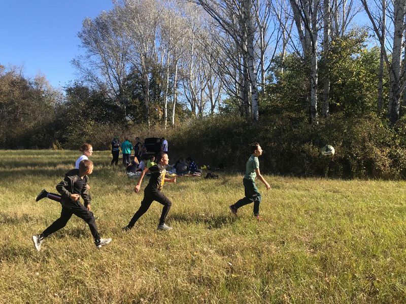 Дети, подкрепившись обедом на свежем воздухе, играли в футбол, пионербол, в «выбивного», танцевали под музыку. Учитель физической культуры Борисова Н.И. обучала детей навыкам установки палатки. Педагогов и детей разных возрастов объединили общие игры и дела, а в результате был получен заряд бодрости на весь учебный год!