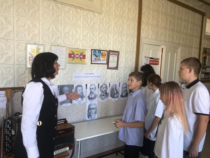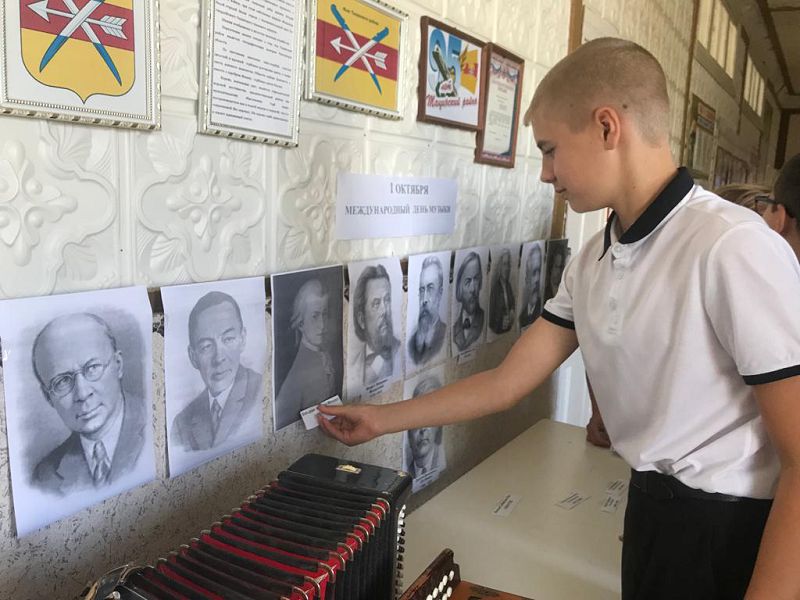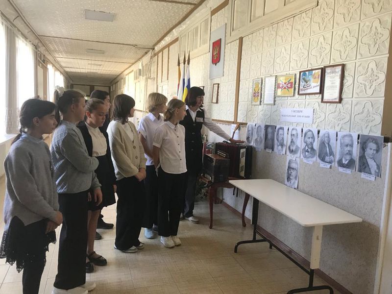 В фойе школы оформлена «Фотозона»: портретная выставка великих отечественных и зарубежных композиторов, выставка музыкальных инструментов из школьного музея. С обучающимися 5-7 классов проведена экскурсия в фотозоне с выяснением их знаний о представленных композиторах и инструментах.