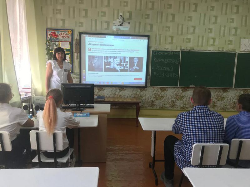В преддверие праздника музыки в школе проведен кинолекторий «Известный музыкант» советником директора по воспитанию Самсоновой Н.А. с обучающимися 5-8 классов. Детям был показан цикл документальных фильмов о великих русских композиторах: П.И. Чайковском, С.В. Рахманинове, С.С. Прокофьеве, Д.Д. Шостаковиче и др.
