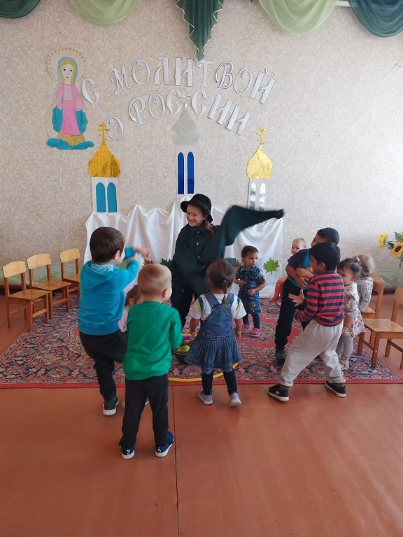 13 октября 2023 г. прошло развлекательное мероприятие, в котором дошколята с удовольствием играли в народные игры «Волшебный платок», «Пугало», «Угадай, кто под покровом», водили хоровод «Сиди, сиди, Яша».