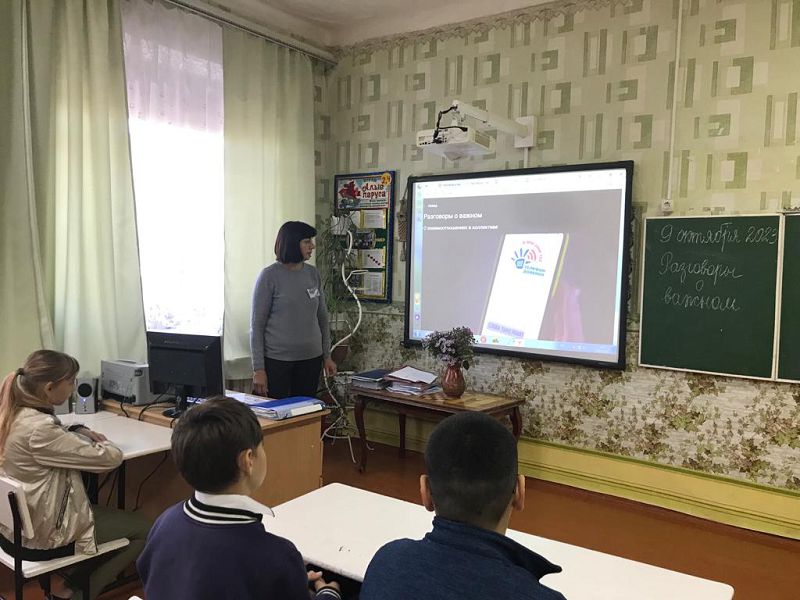 Обучающиеся младших классов на занятии обсуждали непростые ситуации общения, анализировали варианты правильного общения и вырабатывали собственное представление о линии поведения в конкретных случаях. Учились понимать, поддерживать, помогать своим одноклассникам. Занятие сопровождалось просмотром отрывков из мультфильмов и проведением комплексных игр.