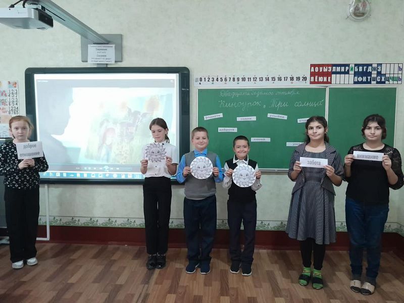 - «Три солнца» посмотрели и обсудили ученики 3 класса. Они нарисовали свои солнышки добра»;