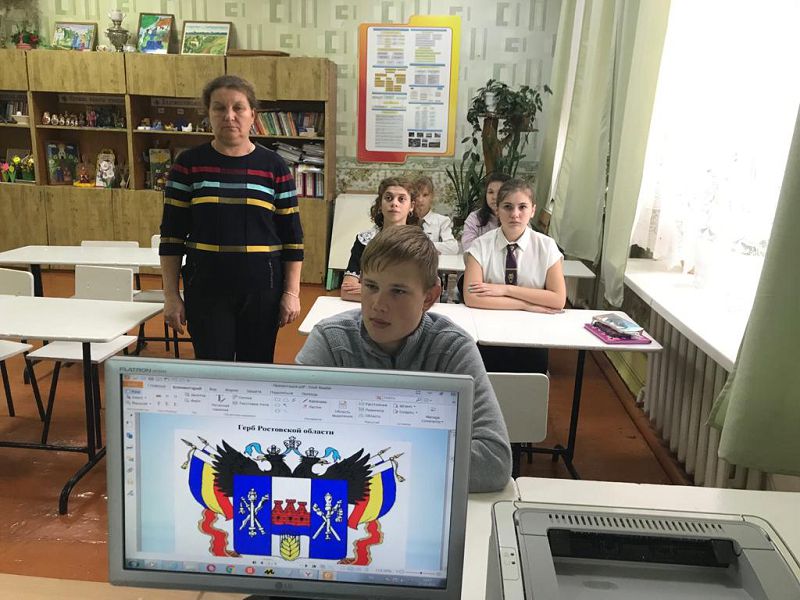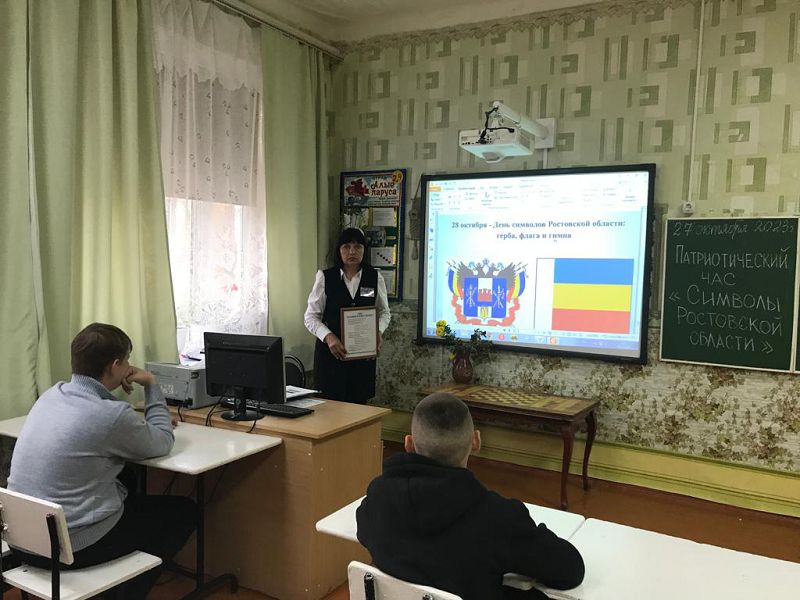 - патриотический час «Символы Ростовской области» проведен с обучающимися 1-11 классов с просмотром презентации;