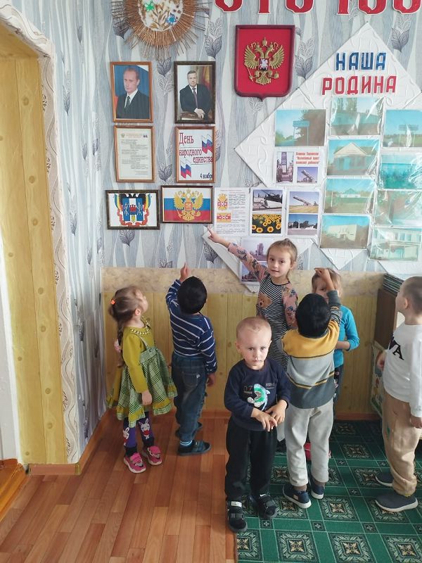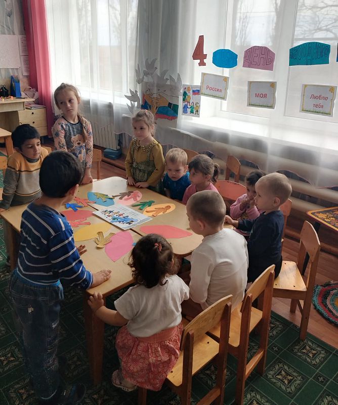 В период с 30 октября 2023 г. по 3 ноября 2023 г. с целью формирования у детей представлений об истории России, ее героическом прошлом, расширения знаний о народах, населяющих Россию, в нашем детском саду был проведен цикл познавательных занятий, бесед, просмотров развивающих мультфильмов, презентаций, чтения художественной литературы и т.д.