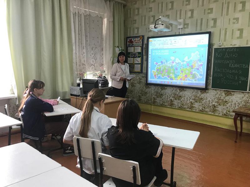3- 4 ноября - это День единства всех российских народов. С целью развития у обучающихся патриотизма, гражданственности, гуманизма, взаимоуважения к народностям России советник директора по воспитанию Самсонова Н.А. организовала участие обучающихся 5-8 классов в онлайн-активностях «Мудрость поколений», «Культурная особенность», в кинолектории "Гора самоцветов". Ребятам были продемонстрированы забавные короткометражные мультфильмы студии "Пилот" (даргинская сказка "Шейдулла-Лентяй" и поморская сказка "Про собаку Розку"). После просмотра участники обсудили сказки. С ребятами проведена настольная игра «Что я знаю о России», акция совместно с «Движением первых «Марафон культур», в которой активное участие приняла Чернова Виктория ученица 5 класса.