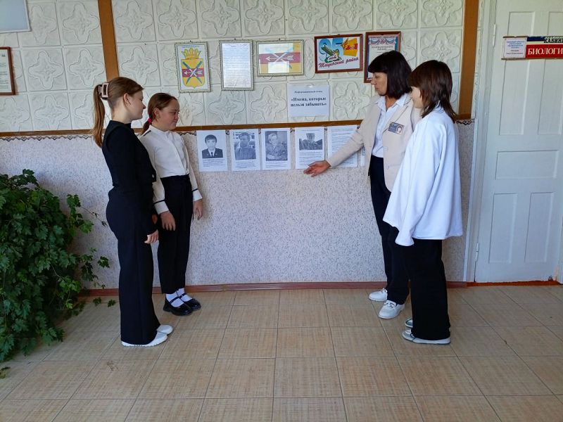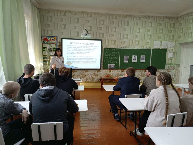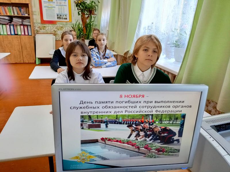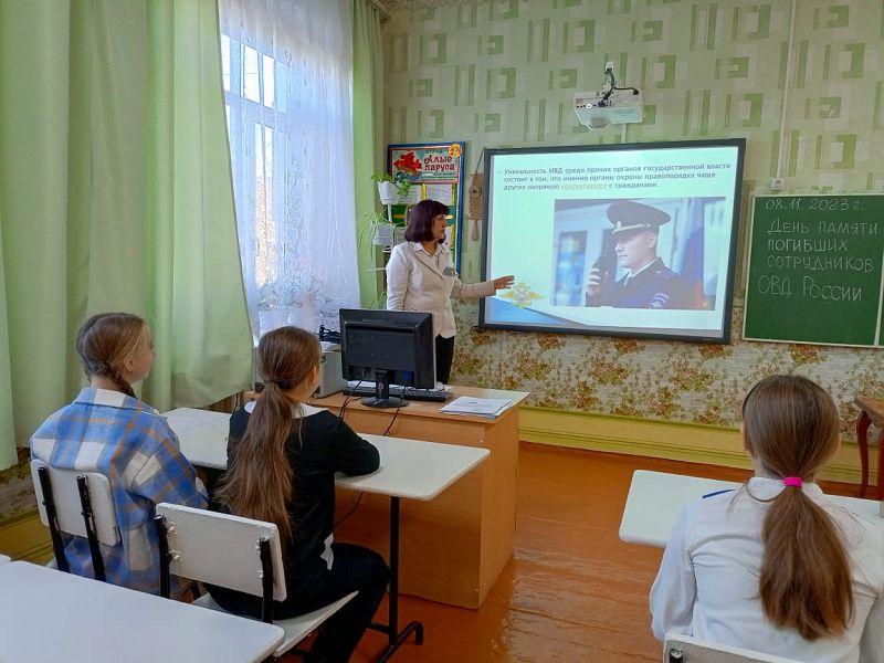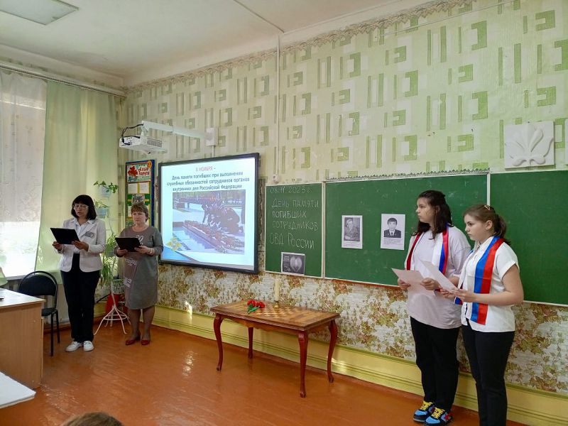В этот день в нашей школе прошли памятные мероприятия, посвященные Дню памяти сотрудников органов внутренних дел России, погибших при исполнении служебных обязанностей. На мероприятии «Из поколения в поколения, помним» советник директора по воспитанию Самсонова Н.А. , старшая вожатая Мышанская С.В. совместно с активом «Движение Первых» Матвиенковой С. И Ключинской С. Ученицами 7 класса вспоминали сотрудников милиции, погибших в годы Великой Отечественной войны. Отдавали дань памяти сотрудникам МВД, погибшим в мирное время. Говорили о подвиге Героя Росси Магомета Нурбагандова, о героическом поступке полковника внутренней службы Олеге Федюре, о героизме офицера спецназа Александре Пархоменко и Ольги Качура. Информационный стенд «Имена, которые нельзя забыть» оформили советник директора совместно с активом школы.