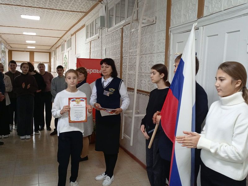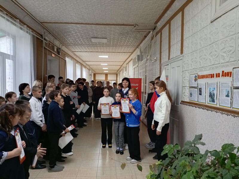На торжественной линейке старшая вожатая Мышанская С.В. рассказала ребятам о Дне памяти жертв ДТП и предложила почтить память погибших минутой молчания. Советником директора по воспитанию Самсоновой Н.А. были награждены победители конкурсов рисунков и поделок «Золотая осень на Дону» и «Дары Дона».