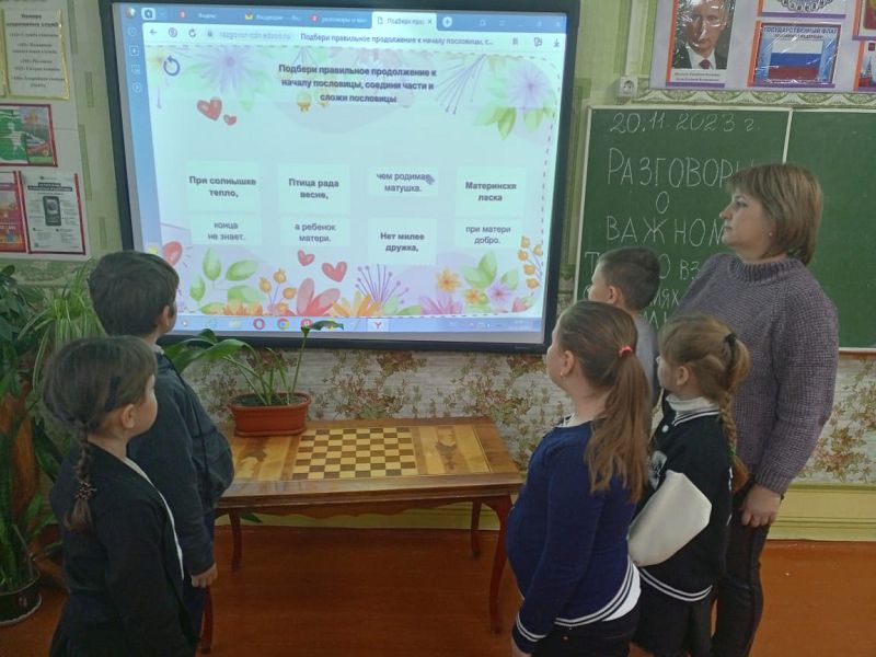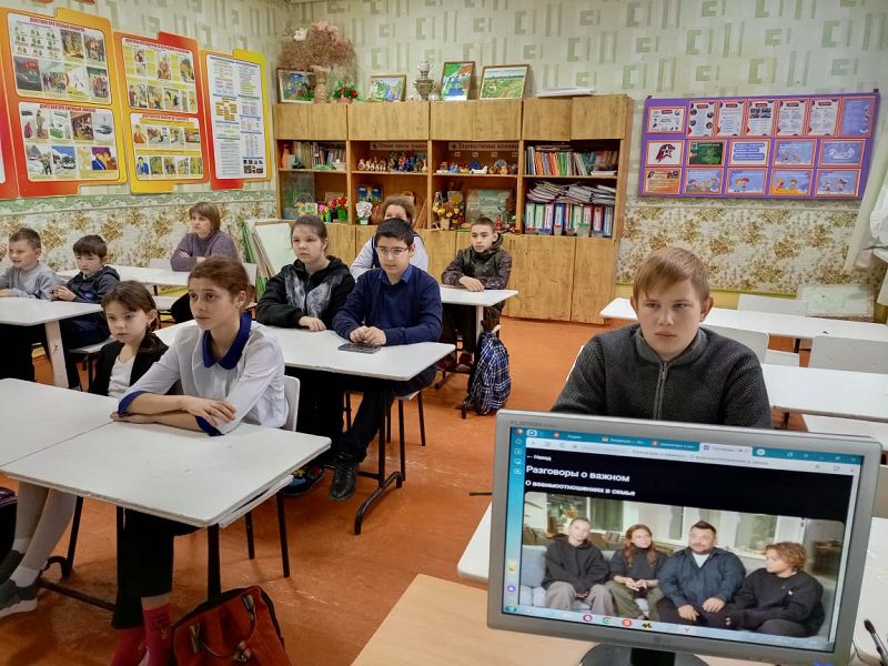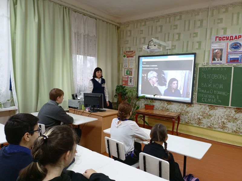 Занятия курса внеурочной деятельности "Разговоры о важном" 20.11.2023 в МБОУ Зазерской СОШ прошли на тему «О взаимоотношениях семье». Сегодня ребята делились своим представлением о том, что означает семья, рассуждали о значении семьи в жизни человека, говорили об основах семьи - ответственности друг за друга, чувстве взаимопомощи, уважении, любви, взаимопонимании. Смотрели видеообращение федеральных спикеров Екатерины и Александра Стриженовых, семейный стаж которых насчитывает более 35 лет, узнали о том, что такое крепкая семья и как ее сохранить. Говорили о традиционных семейных ценностях, рассказывали о семейных традициях, вспоминали пословицы и поговорки о семье, составляли облако слов «Счастливая семья». В конце занятия вспомнили о приближающемся Дне матери и обсуждали идей для поздравления мам и бабушек.
