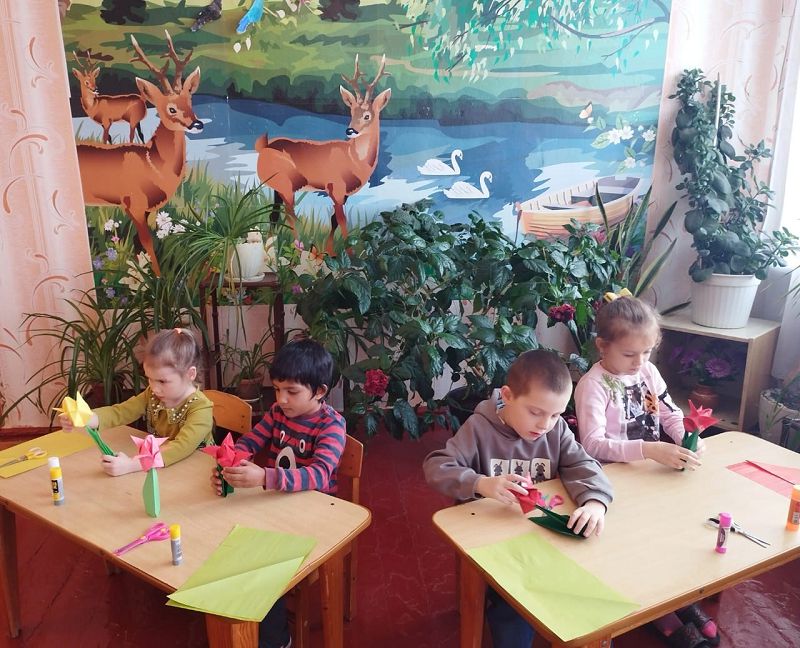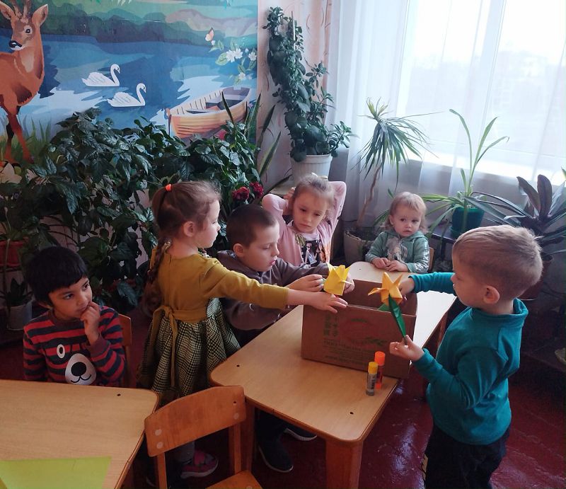 Наши воспитанники совместно со взрослыми изготовили из цветной бумаги объемные фигурки тюльпанов. Цветы созданы в технике оригами. На листе каждого тюльпана были написаны пожелания по сохранению природы.