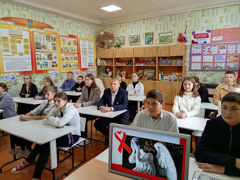 Учащиеся 5-6 классов в этот день посмотрели видеоролик «Знай и помни, чтобы жить». Фильм познакомил ребят с историей Всемирного дня борьбы с ВИЧ/СПИДом, который служит делу укрепления организационных усилий по борьбе с пандемией ВИЧ-инфекции, продолжающей распространяться по всем регионам планеты. Обсудив видеоролик, дети пришли к выводу, день борьбы со СПИДом призван ломать стереотипы и оказывать все виды поддержки людям, встретившим этот ужасный недуг.