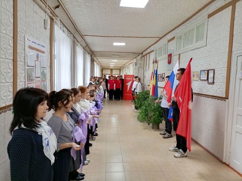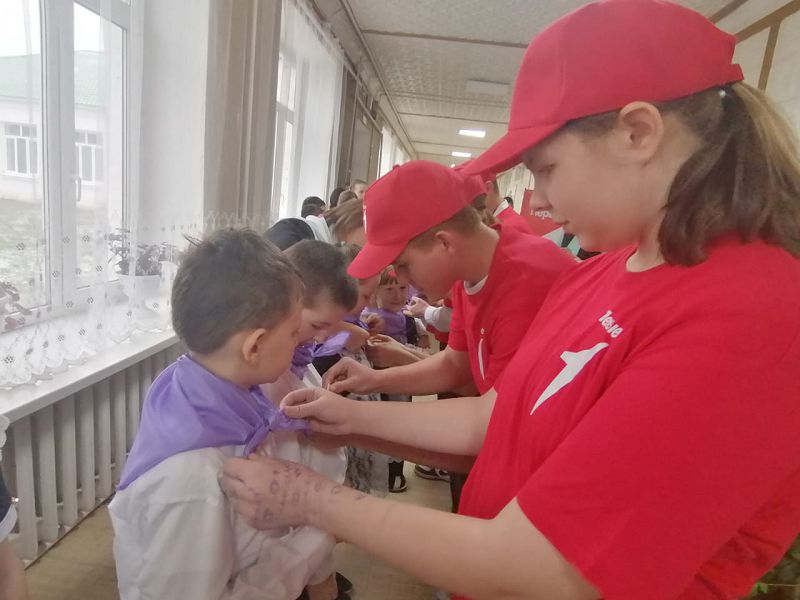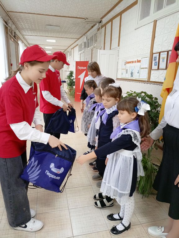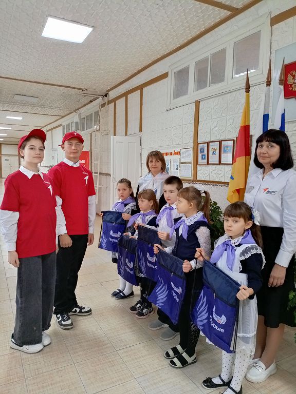 Дети произнесли Клятву орлят, дали торжественное обещание соблюдать правила и законы движения и быть достойными Героев Отечества. Право повязать галстуки и прикрепить значки «Орлята России» было предоставлено участникам Движения Первых нашей школы.