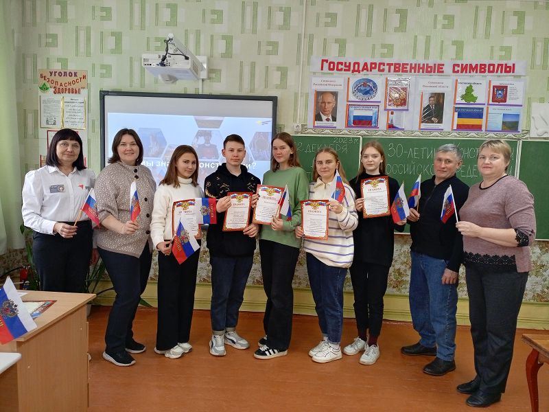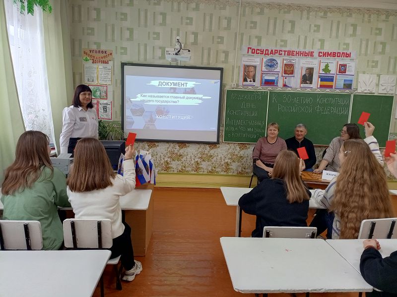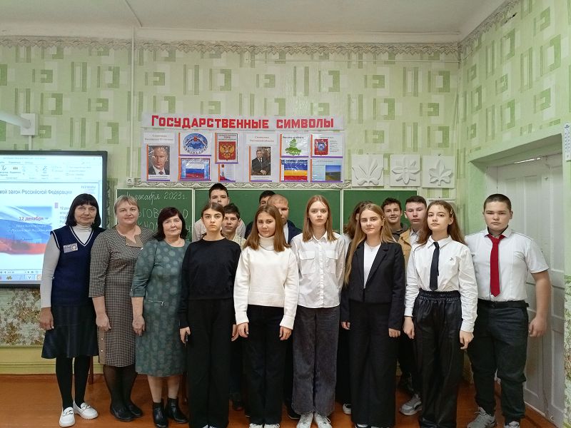 12 декабря в нашей стране отмечается 30-летие Конституции Российской Федерации. К этой дате в МБОУ Зазерской СОШ с обучающимися 1-11 классов проведены патриотические мероприятия: «Что такое Конституция?» с воспитанниками дошкольной группы и учениками начальных классов и выполнение коллективно-творческих дел, «Конституция моей страны» (для 5-9 классов) с приглашением Главы и Депутата Зазерского сельского поселения, секретаря ПО Крикуновой Н.А., интеллектуальная игра «Что мы знаем о Конституции?» (для 8-10 классов) победителями которой стали: Клименова Елена (9 кл.), Казьменко Анна (10 кл.), Бахмутский Д.(9 кл.), активными участницами Гелемеева Зоя (9 кл.) и Иванчина Варвара (8 кл.).