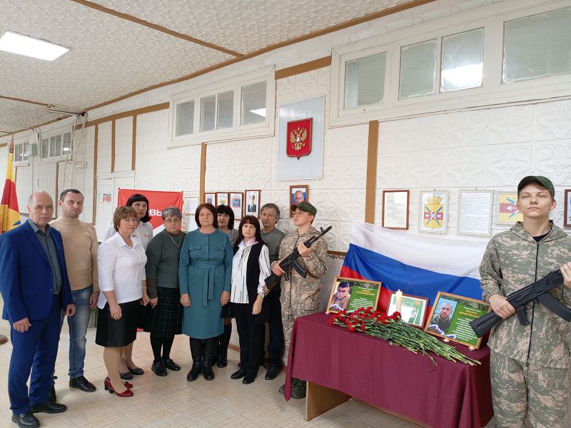 Почтить память героев пришли Иванченко Евгения Григорьевна - мама Димы, двоюродный брат, участник СВО - Линько Константин Иванович, родные тёти Ржевская Ольга Григорьевна и Маркова Наталья Григорьевна, а также исполняющий обязанности Главы Зазерской сельской Администрации Тищенко Александр Семёнович.