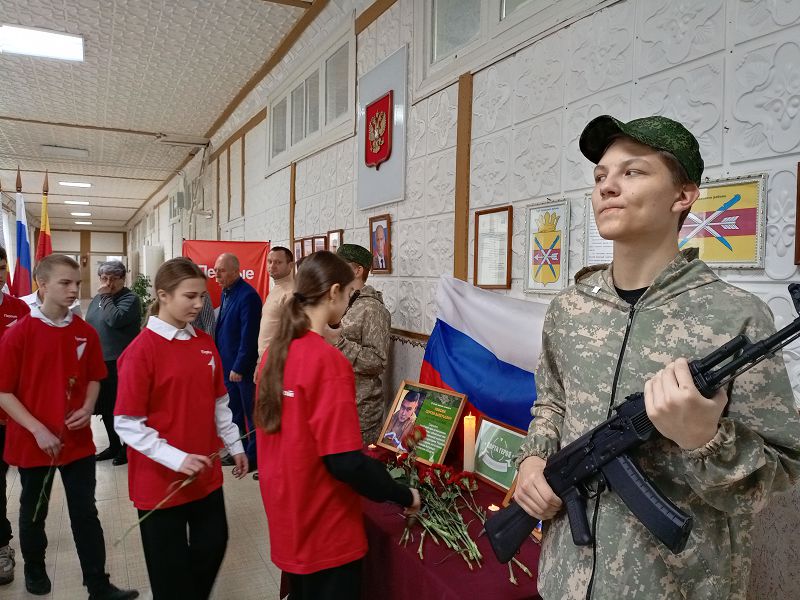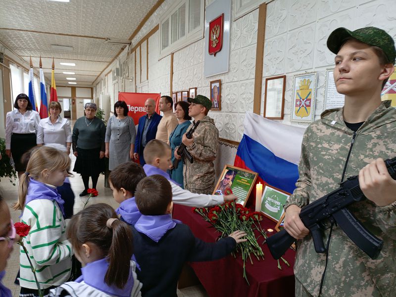 Во время церемонии участникам рассказали биографии погибших российских бойцов Сережи и Димы, а в конце мероприятия, все присутствующие почтили память всех погибших воинов и возложили цветы на Парту наших Героев.