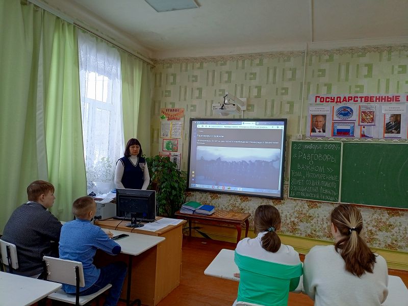 В рамках внеурочной деятельности «Разговоры о важном» для учеников1-11 классов проведено занятие по теме «Непокоренные. 80 лет со дня полного освобождения Ленинграда от фашистской блокады».