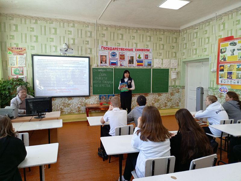 24 января 2024 года для учащихся 7-11 классов проведен классный час, посвящённый Дню памяти жертв политических репресси казачества.