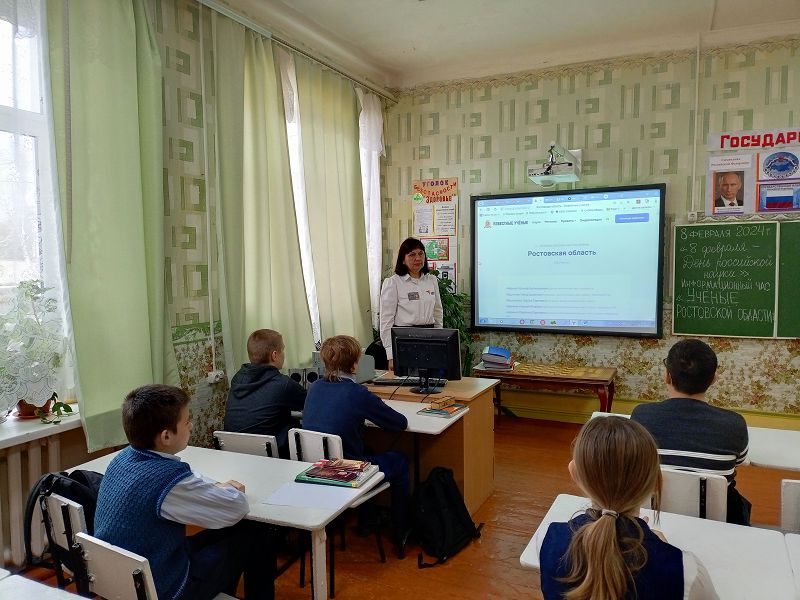 На классных часах дети познакомились с историей становления научного знания в России и поговорили об известных личностях, которые сыграли ключевую роль в технологическом развитии страны, о том, как указ первого Императора Всероссийского об основании Академии наук изменил образование в стране. За годы существования Российской академии наук отечественные ученые сделали множество значимых открытий, повлиявших на историю страны. С обучающимися 1-11 классов проведен кинолекторий «Вдохновляясь наукой» с просмотром фильмов «Великий северный путь», «Взлет», мультфильма «День российской науки» с 1-4 классами. Информационный час «Ученые Ростовской области» состоялся с обучающимися 6-11 классов. Ребята узнали о 478 ученых Ростовской области и их открытиях. Интересные мероприятия для детей 4-7 классов «Машинариум» и для старшеклассников 9-11 классов «Научная битва» организованы советником директора по воспитанию и взаимодействию с детскими общественными объединениями Самсоновой Н.А. совместно с классными руководителями. Активными участниками которых стали шестиклассники Шульга Егор и Красноперов Егор, семиклассницы Гудина Дарья и Балтаг Виолетта, Казьменко Анна ученица 10 класса и Москвин Дмитрий ученик 9 класса.