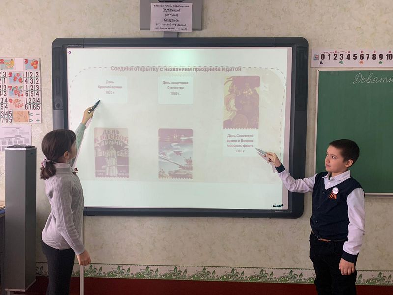 На занятии ребятам рассказали, как появилось торжество, почему особое значение оно приобрело в годы Великой Отечественной войны и как проходят празднования в наши дни. Обучающиеся познакомились военной присягой — клятвой, которую даёт гражданин, вступающий в ряды Вооруженных сил России. Школьники вместе с педагогами объяснили, как они понимают выражение «присягаю на верность». Учащиеся узнали о проекте Российского военно-исторического общества «Маршрут построен». Следуя по ним, можно лучше узнать об истории России, увидеть военную историю нашей страны. Путешествие по памятным местам поможет понять прошлое и сохранить историческую память о подвигах народа. На уроке говорили о героях спецоперации и о поддержке бойцов в зоне СВО. В финале разговора на странице интернет-проекта «Всё для победы» ученики написали слова благодарности ребятам, которые сейчас стоят на защите своего Отечества.
