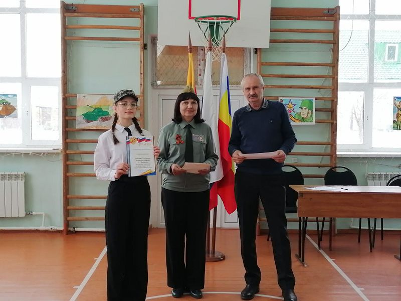 Командиры отрядов Шишова Елизавета ученица 2 класса, Исаева Ариана ученица 5 класса, Лебедева Елизавета ученица 8 класса и Шишов Андрей ученик 9 класса были награждены грамотами за отличную подготовку отрядов советником директора по воспитанию и взаимодействию с детскими общественными объединениями Самсоновой Н.А. и главным членом жюри Дудиновым И.И. членом казачьей дружины Ермаковского казачьего юрта.
