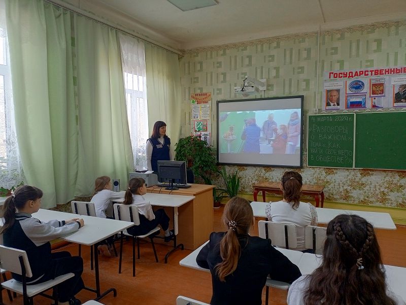 После линейки состоялось очередное занятие курса внеурочной деятельности "Разговоры о важном" по теме "Как найти свое место в обществе". Классные руководители совместно с советником директора по воспитанию Самсоновой Н.А. говорили о том, что для поиска своего места в обществе нужно развиваться и искать разные пути достижения цели. Говорили о традиционных ценностях: любовь к Родине, семье, людям, созидательный труд, взаимопомощь и дружба — те качества, которые помогут найти себя. Ведь желание бескорыстного участия в общественной деятельности определяет полезность человека и важность его служения обществу. Позитивное отношение к совместным делам, сотрудничество в коллективе, понимание своего вклада в общий результат являются необходимыми условиями формирования самореализации любого человека в современном обществе. С детьми также обсудили важность позитивного и ответственного отношения к развитию своих навыков и преодолению трудностей на пути к цели. Помимо этого, учащимся напомнили о различных общественных проектах, в которых они могут принять участие. Уроки прошли в форме познавательной беседы с использованием видеоматериалов и интерактивных элементов.