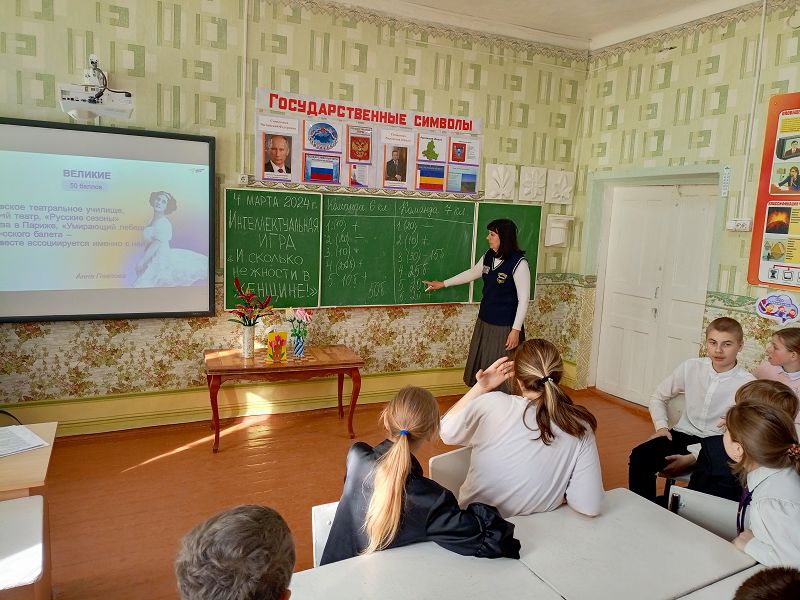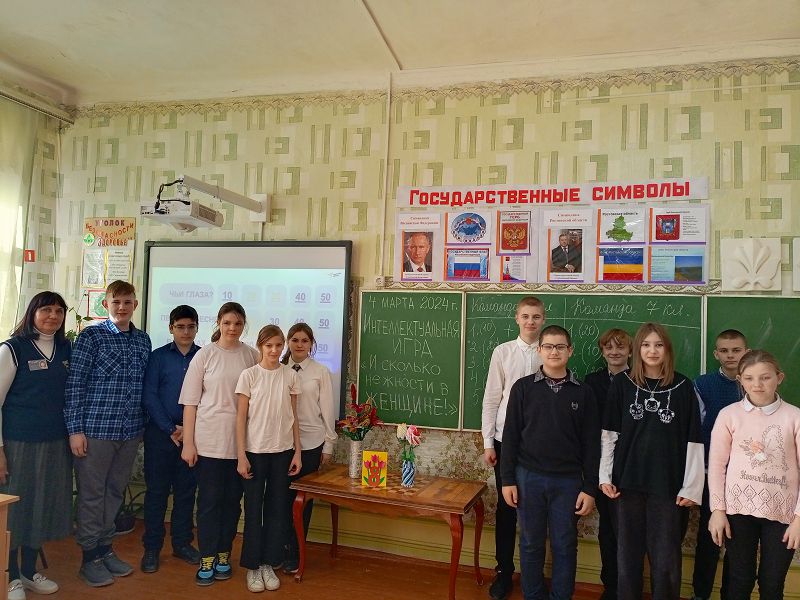 Интеллектуальная игра «И сколько нежности в женщинах!» состоялась между командами 6 и 7 классов, организованная советником директора по воспитанию и взаимодействию с детскими общественными объединениями Самсоновой Н.А. накануне Международного женского праздника. Ребята ответили на вопросы презентации о прекрасных представительницах женского пола, которые относятся к категории великих женщин России.
