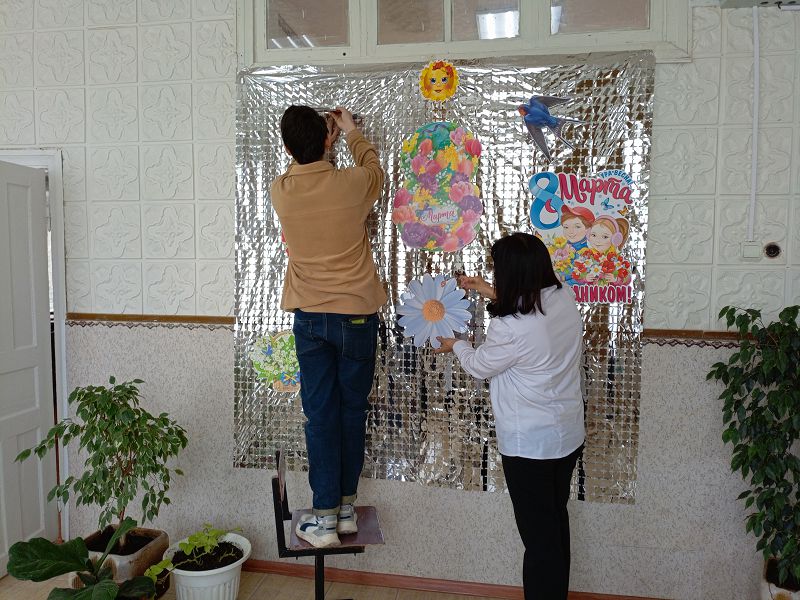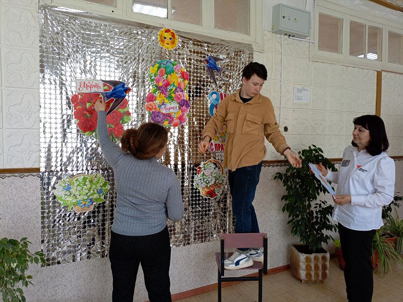 К Международному женскому дню 8 Марта в нашей школе была оформлена «Фотозона» советником директора по воспитанию и взаимодействию с детскими общественными объединениями Самсоновой Н.А. совместно с активом школы «Движение первых». 7 марта 2024 г. школьным медиацентром «Радуга» организована фотосессия учителей прекрасного пола в фотозоне для создания видеоролика «Улыбка учителя».