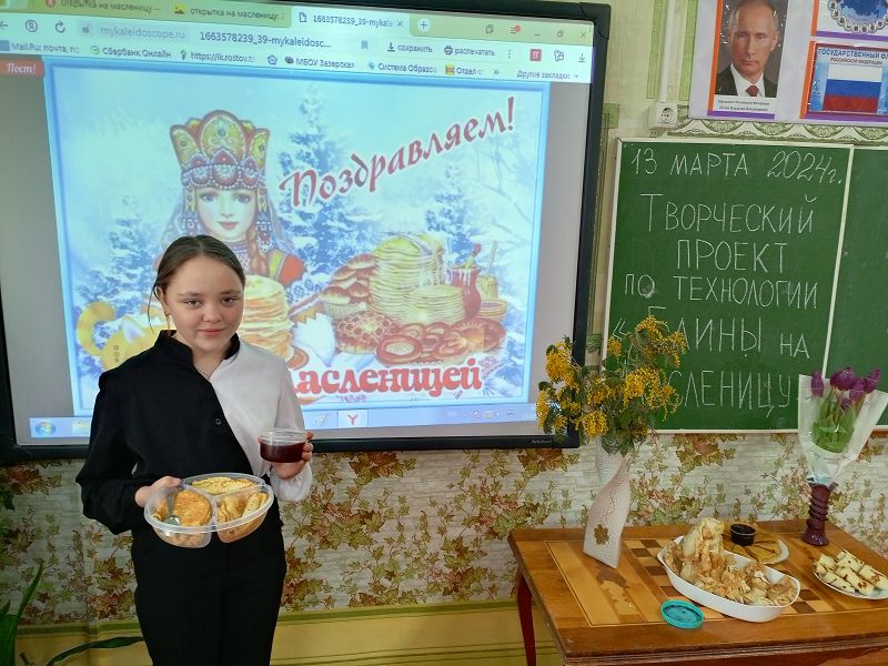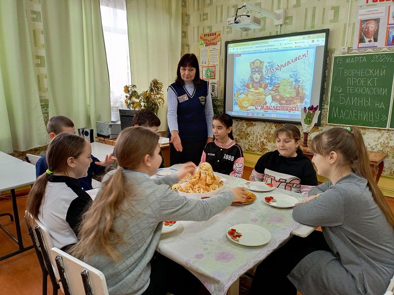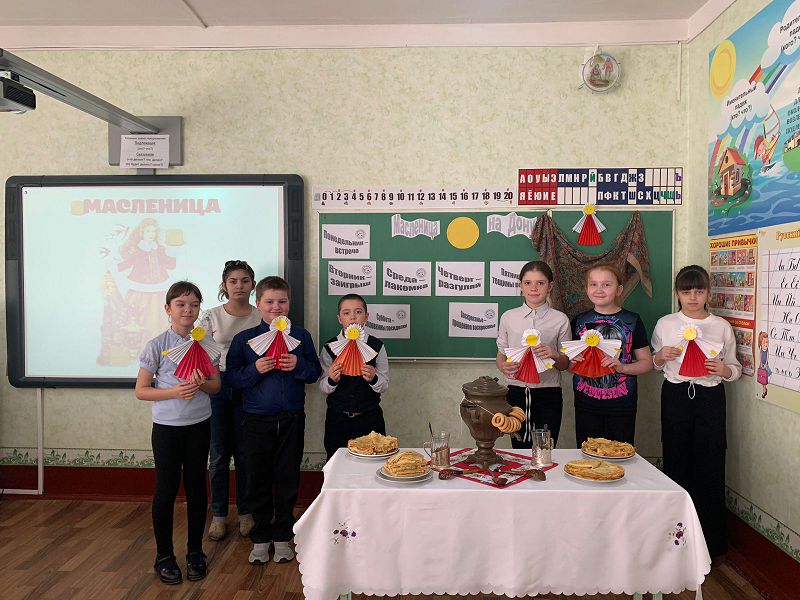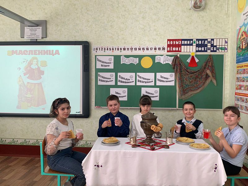 На Дону на Масленицу чаще соревновались в верховой езде и фланкировке, демонстрировали удаль молодецкую. Мальчишки и девчонки с большим интересом слушали рассказ педагогов о каждом дне Сырной седмицы. Какая масленица без блинов? Ученицы 5 класса состязались в умении приготовления блинов. Все справились с проектным заданием «Блины на Масленицу». Знатные хозяйки получатся из наших барышень! Все поздравили друг друга с праздником.