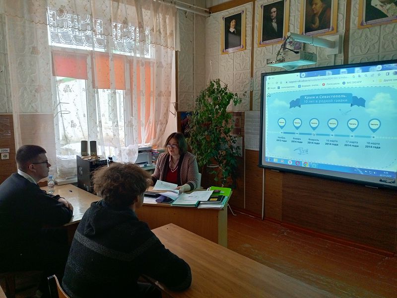 Школьники из разговоров узнали много интересного об истории возникновения полуострова Крым, о его богатейшей природе и самых известных достопримечательностях, о городе Севастополе и Черноморском флоте. Что история Крыма неразрывно связана с историей России. исконно русская земля и олицетворение боевой славы. 18 марта 2014 года был подписан договор о вхождении в состав России двух новых субъектов РФ – Республика Крым и города федерального значения Севастополь. " Крым и Севастополь 10 лет в одной гавани", ученики с удовольствием выполняли интерактивные задания, смотрели видеоматериал «Крым в сердце каждого из нас». В конце внеурочного занятия сделали вывод, что Крым славится не только своим героическим прошлым, но и современными успехами в составе России.