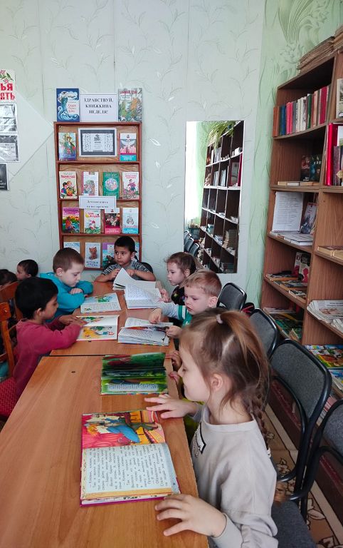 Вместе с ребятами мы организовали выставку «Сказка в гости к нам пришла», где ребята с удовольствием представили свои любимые сказки и рассказали о них. Проведены дидактические игры на тему «Путешествие по сказкам», «Добрые и злые герои сказок», а еще сюжетно-ролевая игра «Библиотека». Дошколята посетили сельскую библиотеку, где Иванова Н.В. прочла сказки К. И. Чуковского. Очень понравилось ребятам участвовать в театрализованной деятельности по любимым русским народным сказкам «Репка», «Заюшкина избушка». На протяжении всей «Книжкиной недели» работала мастерская «Книжкина больница», где ребята «лечили» книги и изучили правила пользования книгой.